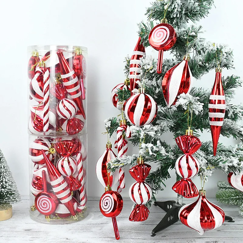1Set Christmas Candy Cane Pendants Red White Xmas Tree Hanging